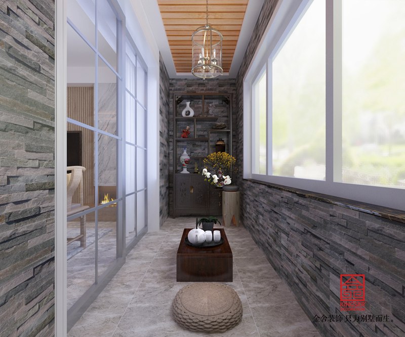 保利拉菲公館172平米裝修-新中式風格-陽臺