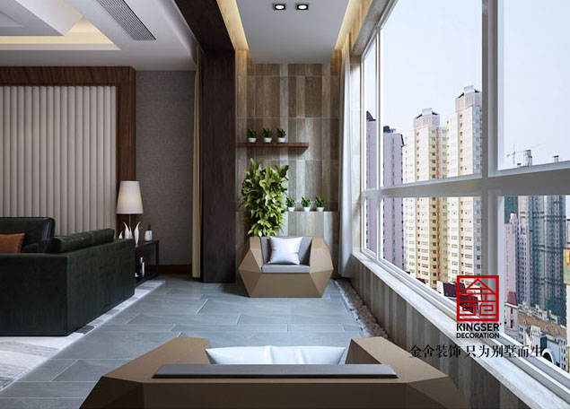 東南智匯城132平米裝修-中式風(fēng)格-陽臺(tái)