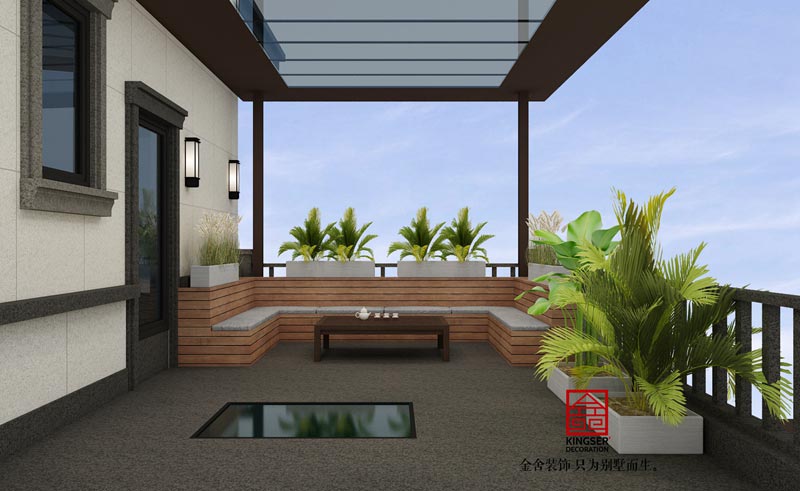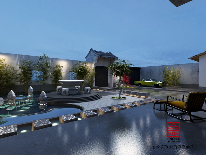 國山雅苑300平新中式別墅裝修庭院效果圖