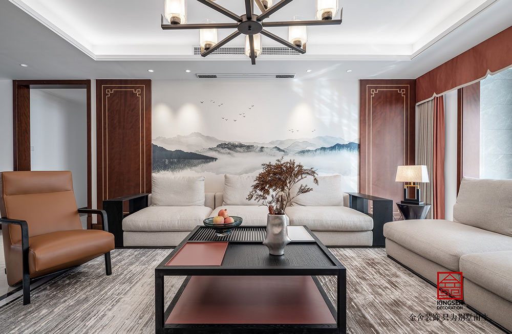 康馨園200㎡新中式實(shí)景 清新大氣的氛圍之下 宛如生活在水墨畫中 塑造出最具中式家居的層次美感