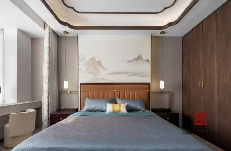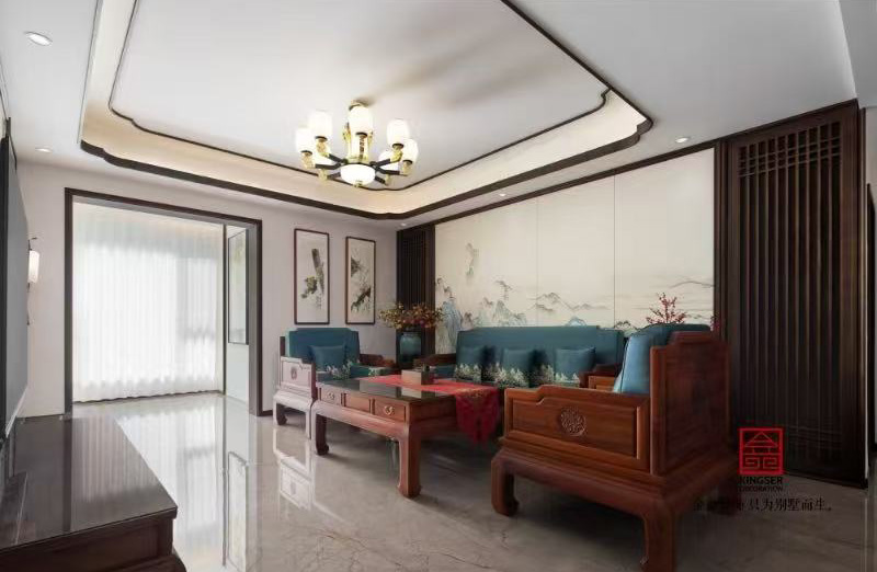 原木與傳統(tǒng)花格裝飾,盡顯中式風情??臻g布局巧妙,功能區(qū)互不干擾,動靜分離。錯層高差處,兼具實用與美觀。