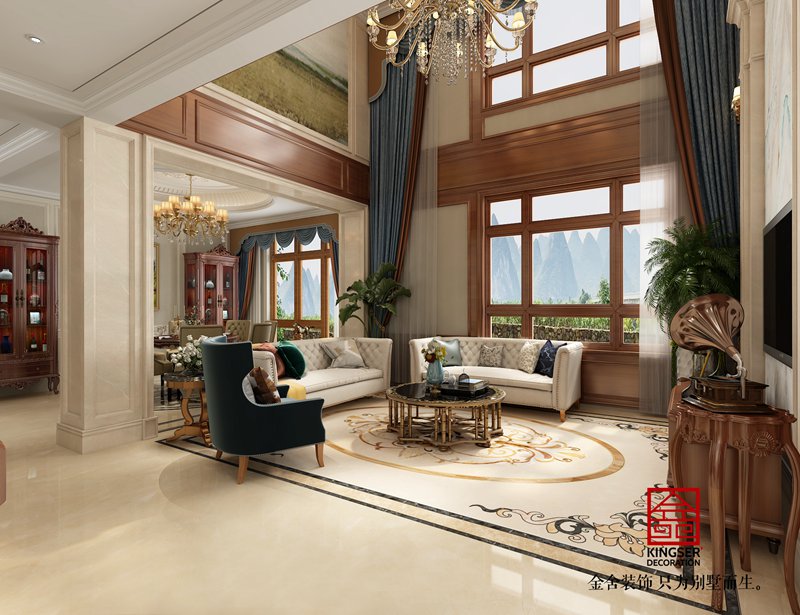 西山林語別墅裝修338m2美式風(fēng)格效果圖
