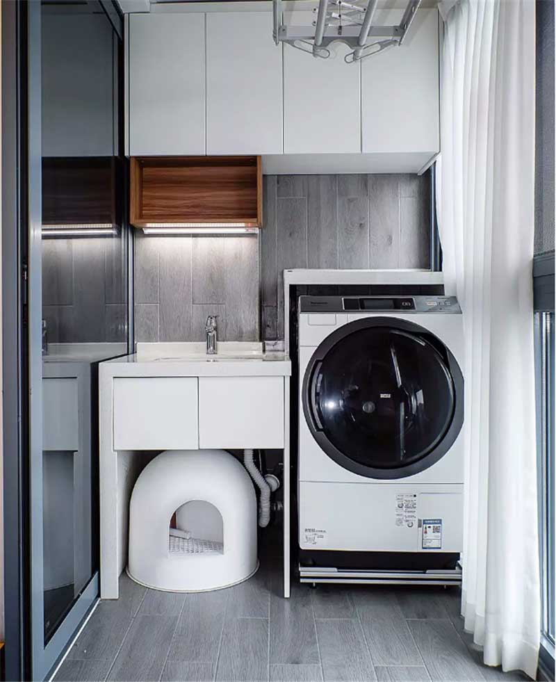 洗衣柜的設(shè)計很多都自帶洗手池,在客廳或者陽臺吃完東西,直接就能在陽臺洗手,更加方便。不過不要忘記配備專門的毛巾和洗漱用品,以后早上也不用擔心衛(wèi)生間使用上的沖突。