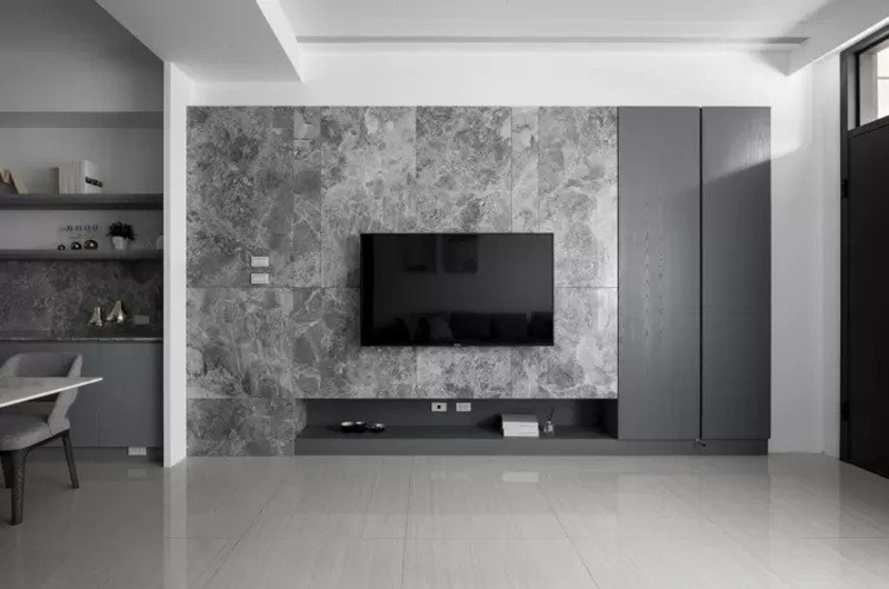 灰白紋理的大理石電視背景墻簡約大氣,沒有過多的裝飾,使空間充滿簡潔高雅的品質(zhì)感。