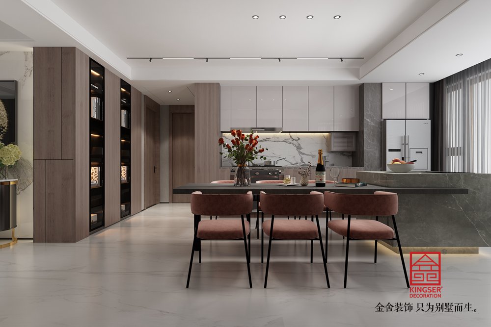 如果是小戶型的空間,想要實現(xiàn)廚房的寬敞,就可以考慮餐廚一體的設計,然后在餐廳廚房之間可以裝多一個小島臺,實現(xiàn)豐富多樣的餐廚體驗,讓小戶型的生活也更加有儀式感。
