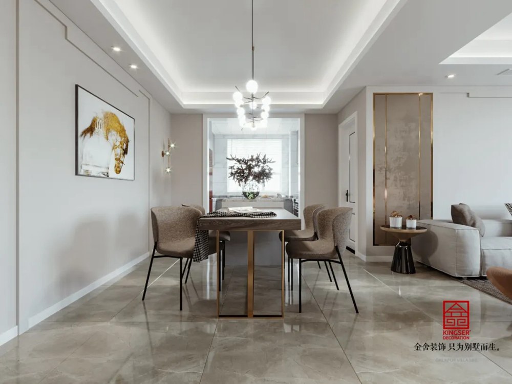 此案例為石家莊金舍裝飾-融創(chuàng)中心137平米輕奢風(fēng)格裝修案例賞析。生活原本就該屬于寧?kù)o,當(dāng)我們置身于繁華都市太久,自然會(huì)想要抽身剝離,去追尋內(nèi)心的閑適與平和。一個(gè)優(yōu)雅舒適的家,除了擁有優(yōu)質(zhì)的地理位置與人性化的社區(qū)管理以外,還需要精致的軟裝設(shè)計(jì)來(lái)裝點(diǎn)生活。輕奢是一種高格調(diào)的生活態(tài)度,正是年輕人所需要的生活品質(zhì),輕奢生活,精致到老,對(duì)于現(xiàn)代人,尤其是當(dāng)下的年輕人們而言,切實(shí)給了人們心靈的觸動(dòng)。