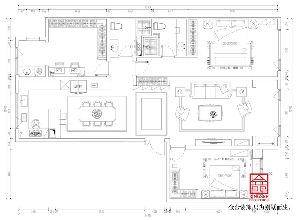 ②餐廳的墻垛占空間,可以打掉,把廚房做成開放式的,餐廳做圍合式餐桌,會更有大宅的品味和感覺。