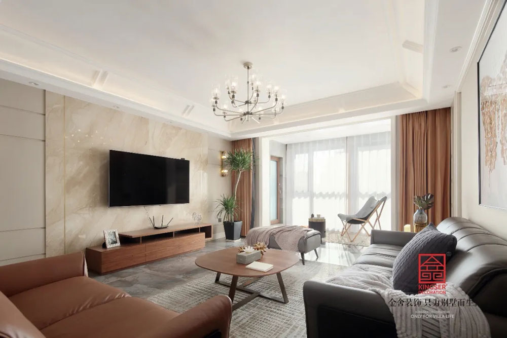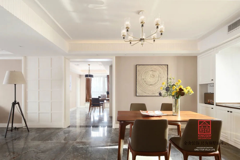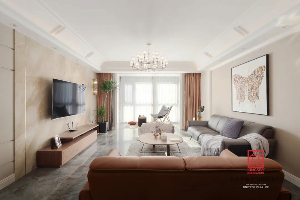 此案例為石家莊金舍裝飾-奧北公元165平米輕奢風(fēng)格裝修實景圖。生活的紛擾,工作的繁雜,多少人在渴望去尋找片刻的清凈時光?!篙p奢風(fēng)格」,恰好迎合了這個時代人們的需求,刪繁就簡的期許,留一片純凈、清靜、自然的空間,一片讓人們沉醉的自我世界。