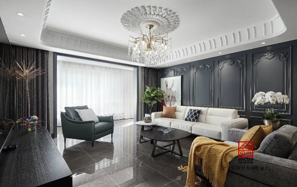 此案例為石家莊金舍裝飾-御河上院220平米新古典風(fēng)格裝修實(shí)景。 新古典風(fēng)格從簡單到繁雜、從整體到局部,精雕細(xì)琢、鑲花刻金都給人們留下一絲不茍的印象。它一方面保留了材質(zhì)、色彩的精致風(fēng)格,可以很強(qiáng)烈地感受到悠久的歷史痕跡與渾厚的文化底蘊(yùn),同時(shí)又摒棄了過于復(fù)雜的肌理和裝飾,簡化了線條。