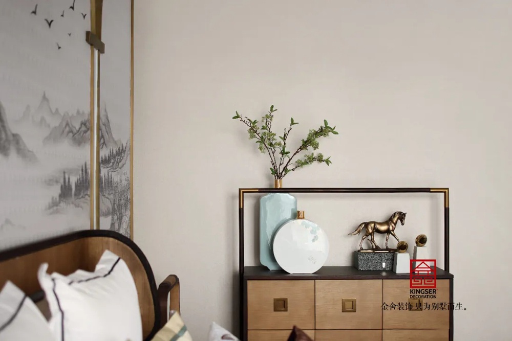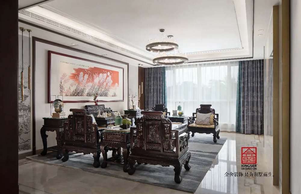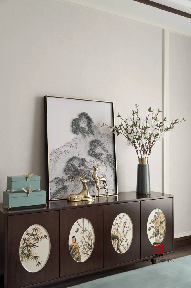 此案例為石家莊金舍裝飾-天海容天下170平米新中式風(fēng)格裝修實(shí)景。新中式設(shè)計(jì)風(fēng)格,有多彩豐滿,有瘦金雅致,有融合奔放。這一切是東方審美下,被現(xiàn)代主義漸融洗滌,成就新中式之名。