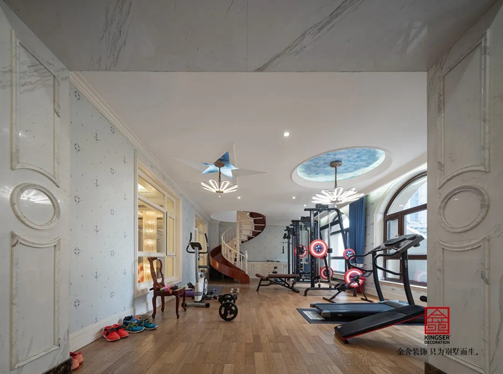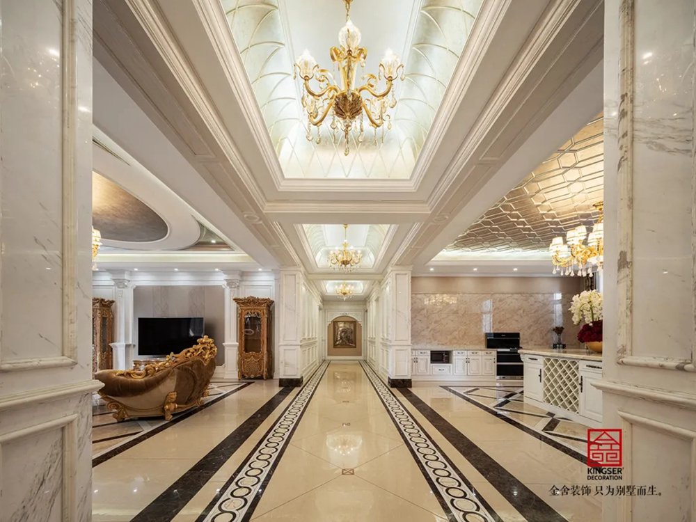 此案例為石家莊金舍裝飾-無(wú)極御瓏華府2400平米別墅歐式風(fēng)格裝修實(shí)景。御瓏華府“中西合璧”這是一套集“土建+硬裝+軟裝+庭院”一體的全案設(shè)計(jì),占地東西70米,南北50米,整個(gè)結(jié)構(gòu)坐落于小區(qū)的核心位置,打開家門,先是私有的庭院生活,再而迎面就是小區(qū)的綠化水系,視野開闊,一覽全景。方案設(shè)計(jì)為“中西合璧”風(fēng)。浪漫的歐式古典風(fēng)融入東方設(shè)計(jì)元素,嶄新的文化底蘊(yùn)得以傳承,既有歐式的富貴典雅又有中式的文化底蘊(yùn),二者巧妙應(yīng)用,提升整個(gè)空間氣質(zhì)。