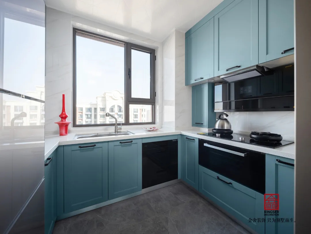 此案例為石家莊金舍裝飾-維多利亞三期120平米美式裝修實景。凡是設(shè)計,皆涉及色彩,或許濃烈而充滿激情,或許素淡而沉靜自若,陸離斑駁間,演繹出城市的性格。色彩里所蘊藏的豐富想象力,則渲染著家居生活的底色。
