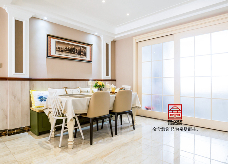 設(shè)計(jì)說明:此實(shí)景案例為河北別墅裝修裝飾-天海譽(yù)天下217平米簡約美式裝修實(shí)景??臻g是為人創(chuàng)造的,所以人是空間的主體,而不是空間的載體。正是因?yàn)橛泻芏嗳舜嬖?,所以才有情感存在。空間是有情感的,但也需要有品味。