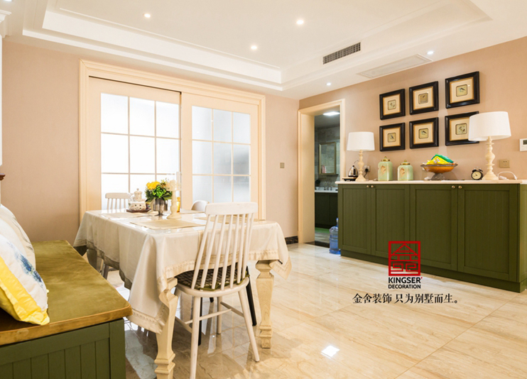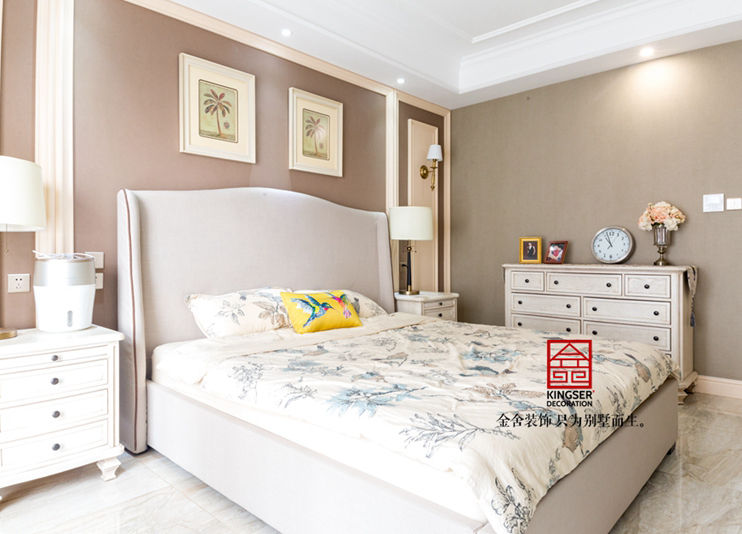 空間以大米和白色為主,體現(xiàn)了家庭的高貴感,帶有清新自然的家具,不僅體現(xiàn)了美國式的風(fēng)格,還體現(xiàn)了家庭的自然感受。