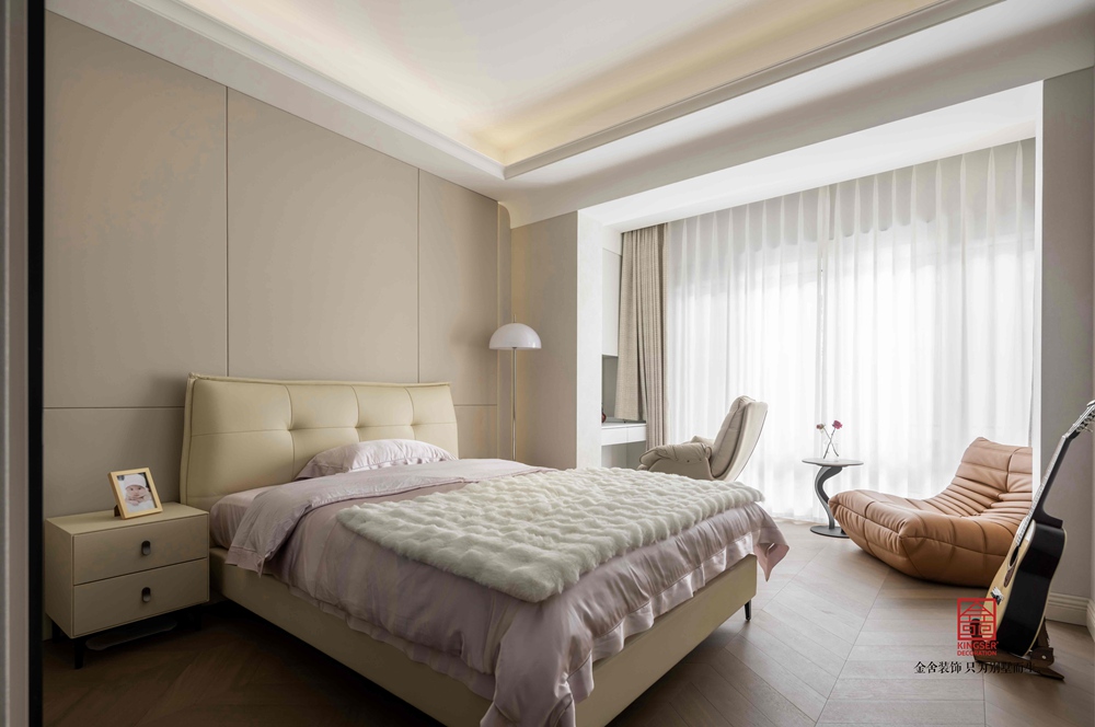 臥室的設(shè)計(jì)充分引入室外光線,在保持了私密性的同時(shí),也通過自然與藝術(shù)相加的色調(diào),調(diào)和整個(gè)空間的氛圍。將衛(wèi)生間,衣帽間,臥室三位一體的空間安排的井然有序,于美學(xué)之中呈現(xiàn)生活和諧有序的舒適感。