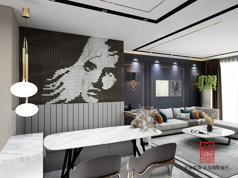 設(shè)計說明:現(xiàn)代輕奢的風(fēng)格演繹手法,以其強對比的材質(zhì)關(guān)系、精致細節(jié)來彰顯產(chǎn)品的高品質(zhì)和輕奢感?,F(xiàn)代港式風(fēng)格注重居室的實用性,同時體現(xiàn)了現(xiàn)代大都會生活的雅致與時尚,符合現(xiàn)代人的新概念生活品味。 以獨特的審美視覺,將懷舊的港式情懷與現(xiàn)代生活需求相結(jié)合,入戶花園結(jié)合自然的舒適感,奏響時間維度的光影流動,推動歲月的齒輪,游弋其間,此唱彼和。 美好從歸家這一刻開啟,精致的玄關(guān),打造出氣質(zhì)獨特的玄關(guān)端景,那時尚的雕像活靈活現(xiàn),仿佛期盼著歸家的主人,伸手撫順絨毛,將鑰匙皮包放入柜子,卸下浮沉的疲倦,在長椅上換上拖鞋,正式進入居家狀態(tài)。這是何種靜謐,何種愜意,促成“歸家團聚”的美好。