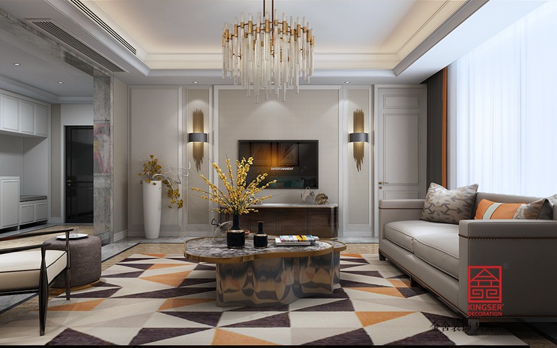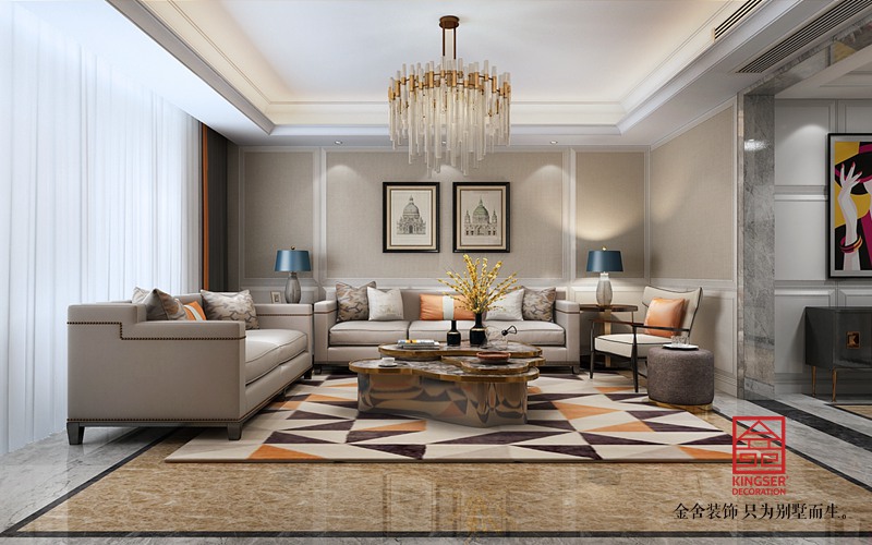榮盛華府213平米現(xiàn)代美式風格裝修效果圖