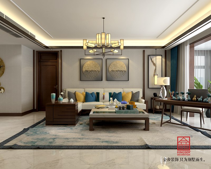本案為石家莊金舍裝飾-御河上院176平米新中式風格裝修效果圖。位于河北石家莊正定新區(qū)的一套大平層豪宅度假房。根據項目的特點,設計師在設計風格定位時采用現代中式風格,通過合理的空間規(guī)劃,材質與色彩的精心拿捏,營造出一處富有尊貴感和人文特色的中國式家居空間。