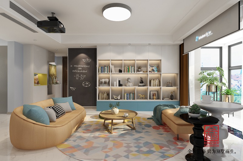 隨意的沙發(fā)擺放,可以一起坐著聊天可以和孩子一起做手工看書可以放下投影來看電影。更加符合年輕人的生活方式