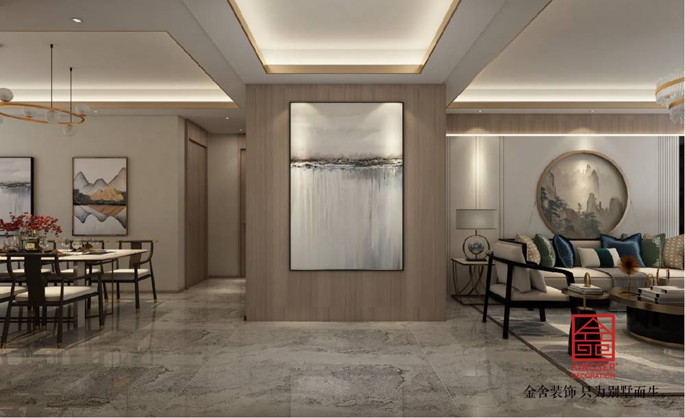 設(shè)計(jì)說(shuō)明:此案例為石家莊金舍裝飾-融創(chuàng)中心180平米新中式風(fēng)格裝修案例。新中式風(fēng)格不是純粹的元素堆砌,而是通過(guò)對(duì)傳統(tǒng)文化的認(rèn)識(shí),將現(xiàn)代元素和傳統(tǒng)元素結(jié)合在一起,