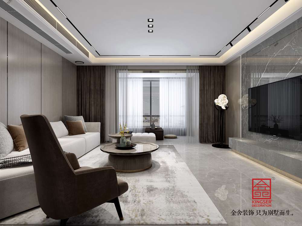設(shè)計說明:本案例為石家莊金舍裝飾-榮盛華府178平米現(xiàn)代輕奢風(fēng)格裝修效果圖。以現(xiàn)代輕奢風(fēng)格為主,空間以金屬、大理石、護墻板等材質(zhì)為主,中性色調(diào)為主,用色彩的純度傳遞細(xì)膩的質(zhì)感。造型簡潔,線條流暢的家具組合搭配,營造出穩(wěn)定、協(xié)調(diào)、溫馨的空間感受,滿足現(xiàn)代年輕家庭的輕奢需求。