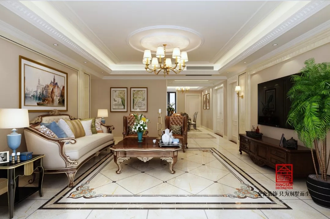 此案例為石家莊金舍裝飾-榮盛華府185平米簡歐風(fēng)格裝修效果圖。