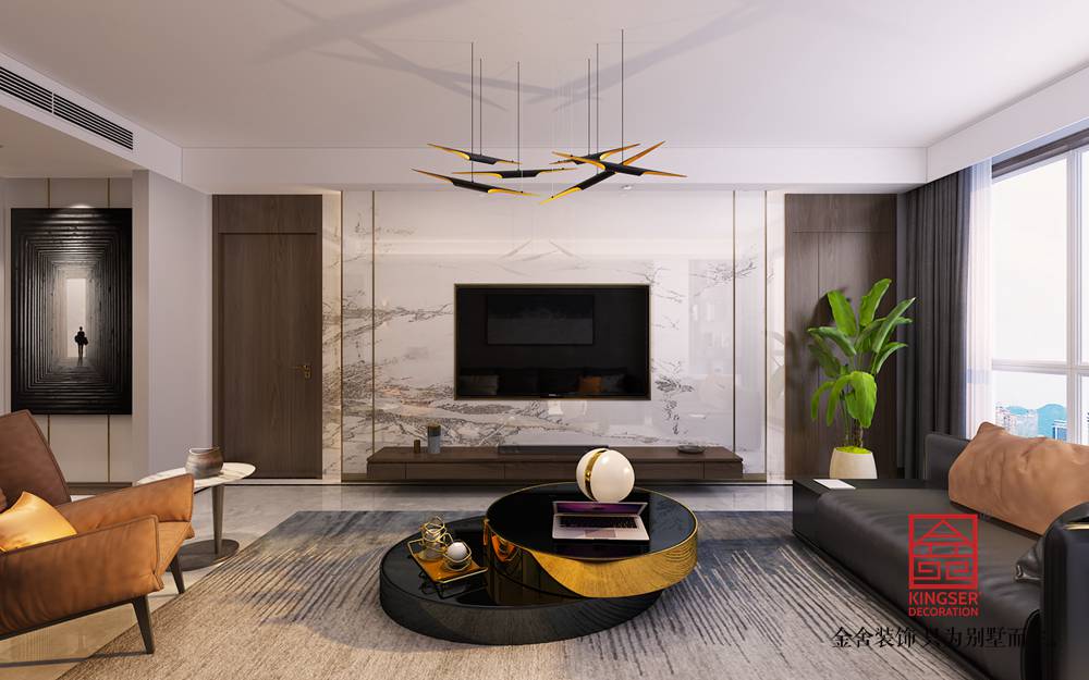 設計說明:此方案為石家莊金舍裝飾-奧北公元134平米現(xiàn)代風格裝修效果圖。業(yè)主為年輕新婚夫婦,對新家有無限的美好憧憬,所以在出設計方案的時候更注重顏色以及燈光的舒適度。沒有做太多復雜的造型,只是用天然石材以及護墻板的木紋紋理來襯托出現(xiàn)在風格的時尚氣息。地面瓷磚的鋪貼方式也沒有采用傳統(tǒng)的分空間區(qū)域的方式來做造型拼花,而是采用了對工人師傅施工工藝要求很高的波導線繞墻鋪貼方式,這樣從視覺感上擴大了整個空間的空間感。這樣也不會限制家具擺放的位置,后期家具進場后可以根據(jù)業(yè)主自己的使用喜歡擺放不同的角度。