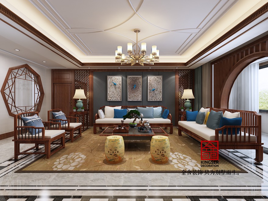 當(dāng)前位置: 首頁 > 裝修案例 > 裝修圖庫 > 御河上院219平米新中式裝修-客廳